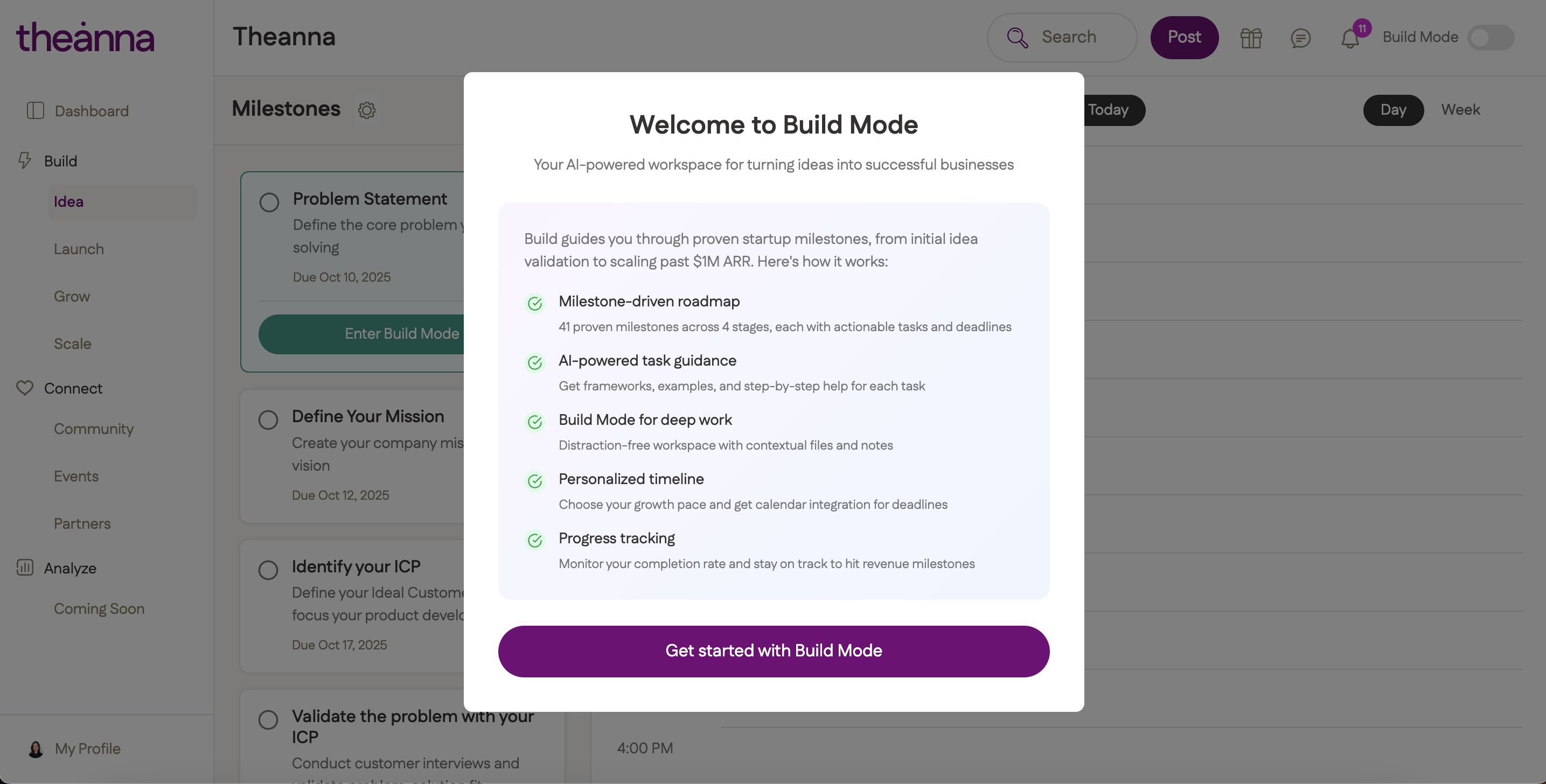 👉 Join Theanna to access milestone frameworks, AI-powered growth tools, and partner platforms like Lovable that help you build, launch, and get your first paying customers, all without external funding.
